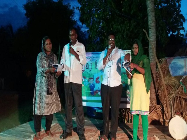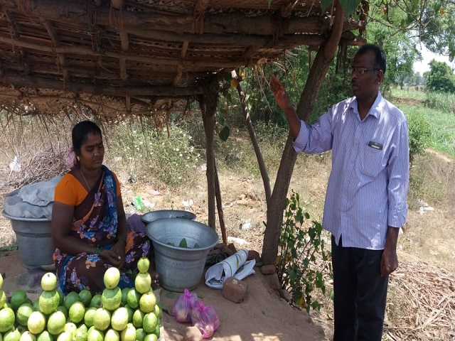 We are attaching two photos where I (Pastor Tamil Maran) am explaining the gospel of Matthew. She is guava fruit vendor on the high road. She accepted Jesus Christ as Saviour. I prayed for her and her family for welfare her family affairs. She was suffering from nightmares and fear. Once Jesus Christ name uttered through prayer, she was delivered from anxiety, from fear. She is happy now. Her name is Mrs. Annakili having two sons aged 14 years and 7 years.